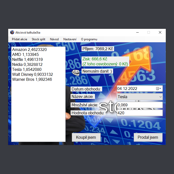 Akciová kalkulačka Vám pomůže při výpočtu daňového základu z obchodů s cennými papíry (CP).